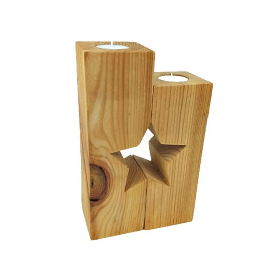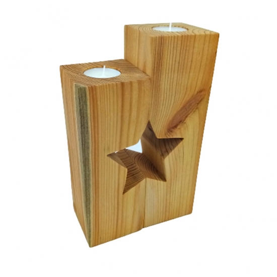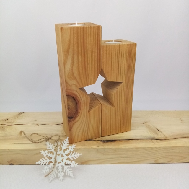 Świąteczne świeczniki – prawdziwy hit - para świeczników drewnianych z wyciętą pomiędzy nimi gwiazdą. Bardzo efektowne i zarazem pełne subtelnego świątecznego uroku, na dwie świece - tealight’y.