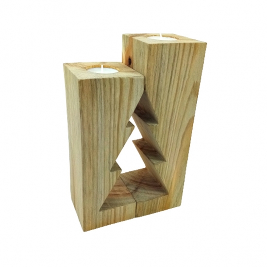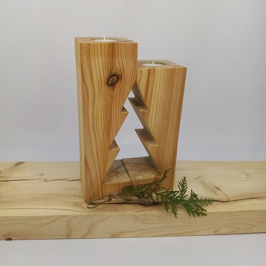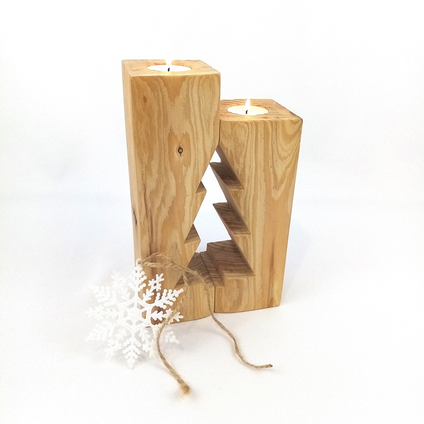艢wiecznik choinka, dwucz臋艣ciowy z motywem choinki, na dwie 艣wiece-tealight鈥檡. Pi臋knie prezentuje si臋 o艣wietlony blaskiem p艂on膮cych 艣wiec.