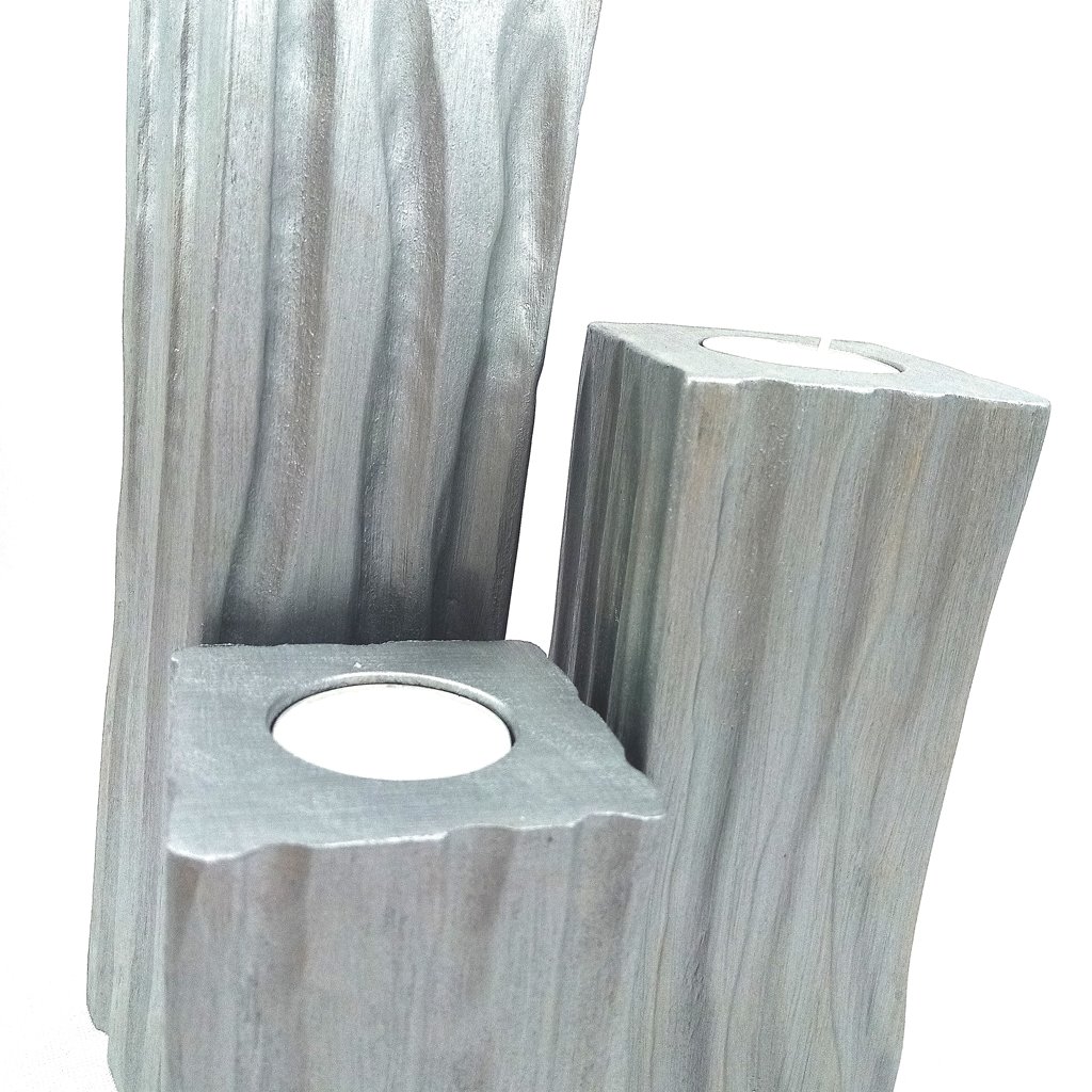 Nasz świecznik srebrny to połączenie metalicznego blasku z grą świateł w nieregularnych wgłębieniach, na bocznych krawędziach.