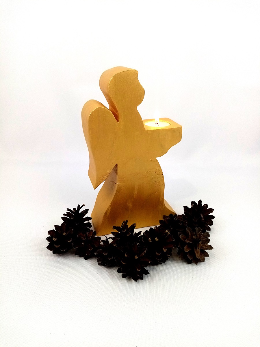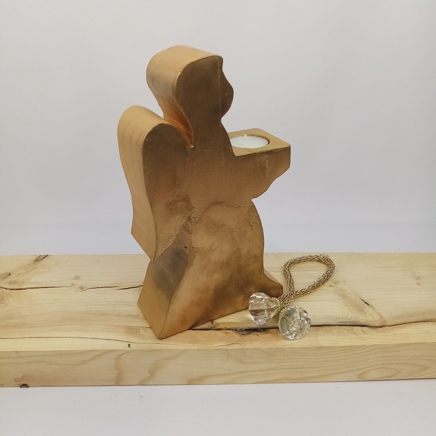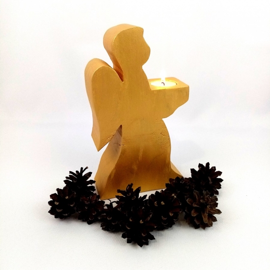 Świecznik złoty, to figurka anioła trzymająca w dłoniach tealight (świeca - podgrzewacz).
