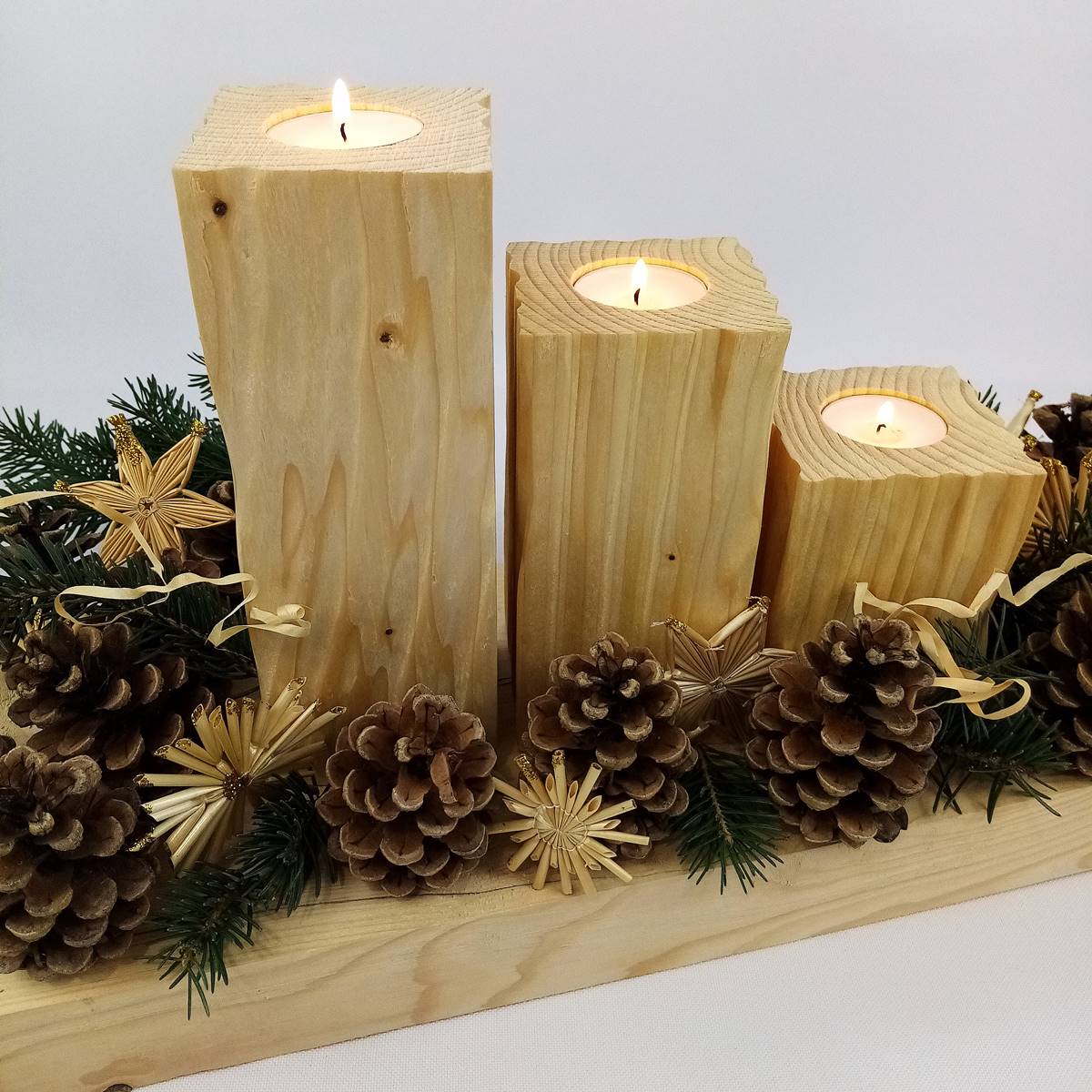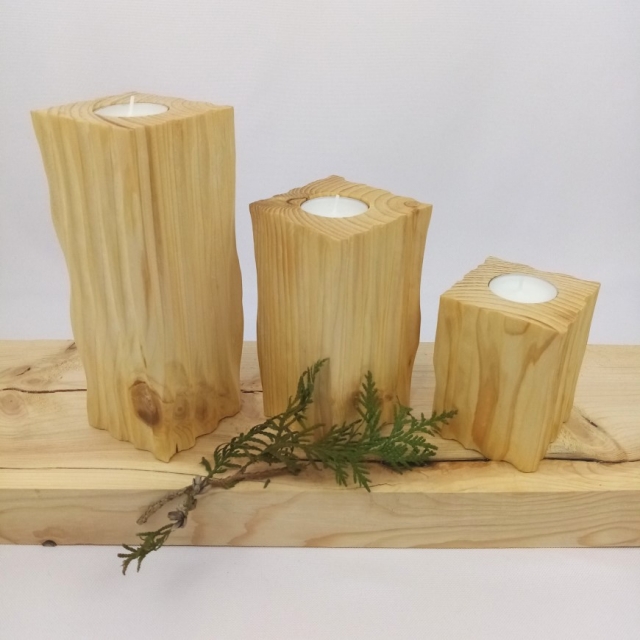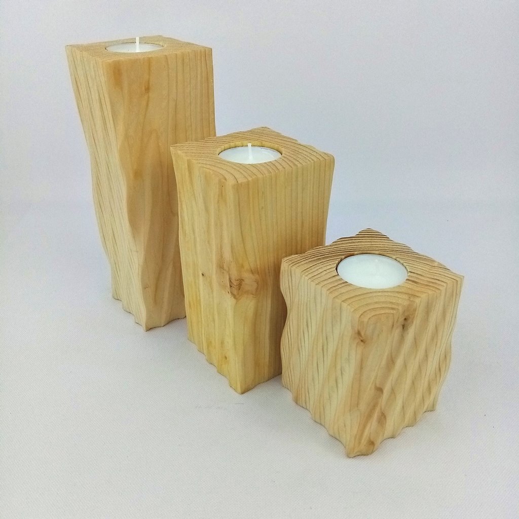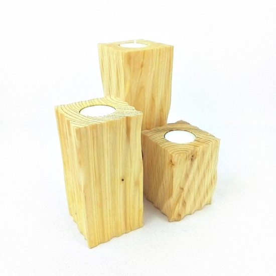Świeczniki dekoracyjne z naturalnego drewna, komplet