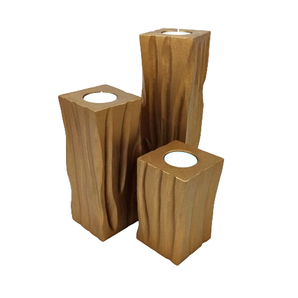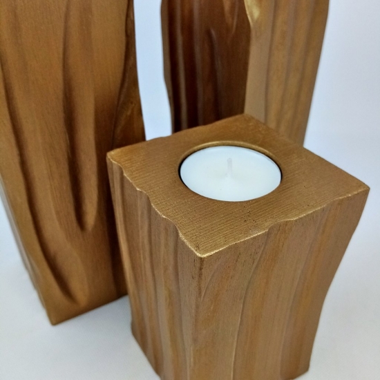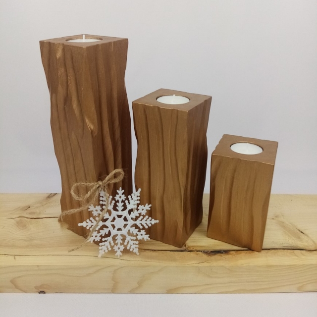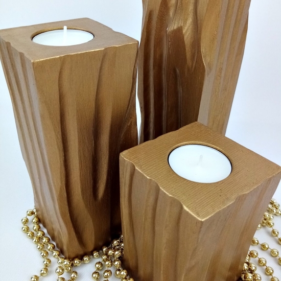 Złote świeczniki komplet z drewna